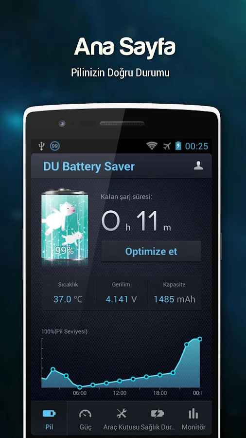 Merhaba arkadaşlar, android telefonunuz için mutlaka bulunması gereken bir program olan Du Battery Saver Pro ile telefonunuzun pil ömrünü %70 oranında arttırabilirsiniz.Pil sıcaklığını tespit edip arkaplanda gereksiz uygulamaları durdurup pilinizi daha uzun süreli kullanabilirsiniz.Uygulama Play Store'de 6,64TL dir sitemizden ücretsiz bir şekilde full indirebilirsiniz.